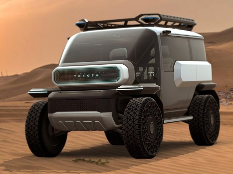 Дизайн “межпланетного” вездехода вдохновлен легендарным Land Cruiser FJ40. Это выражается в первую очередь в овальной вставке с буквенным логотипом компании. У концептуального автомобиля туда встроен датчик LiDAR и дополнительные камеры. Большая часть кузова выполнена в виде стеклянной капсулы для лучшего обзора. Внутри устанавливается широкий экран вместо передней панели. Вместо привычного рулевого колеса перед водителем находится специальный джойстик.