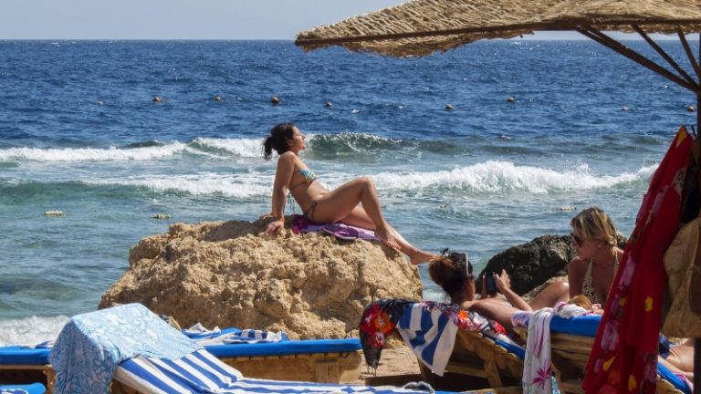 Туристы загорают на пляже в Шарм-эль-Шейхе. Архивное фото